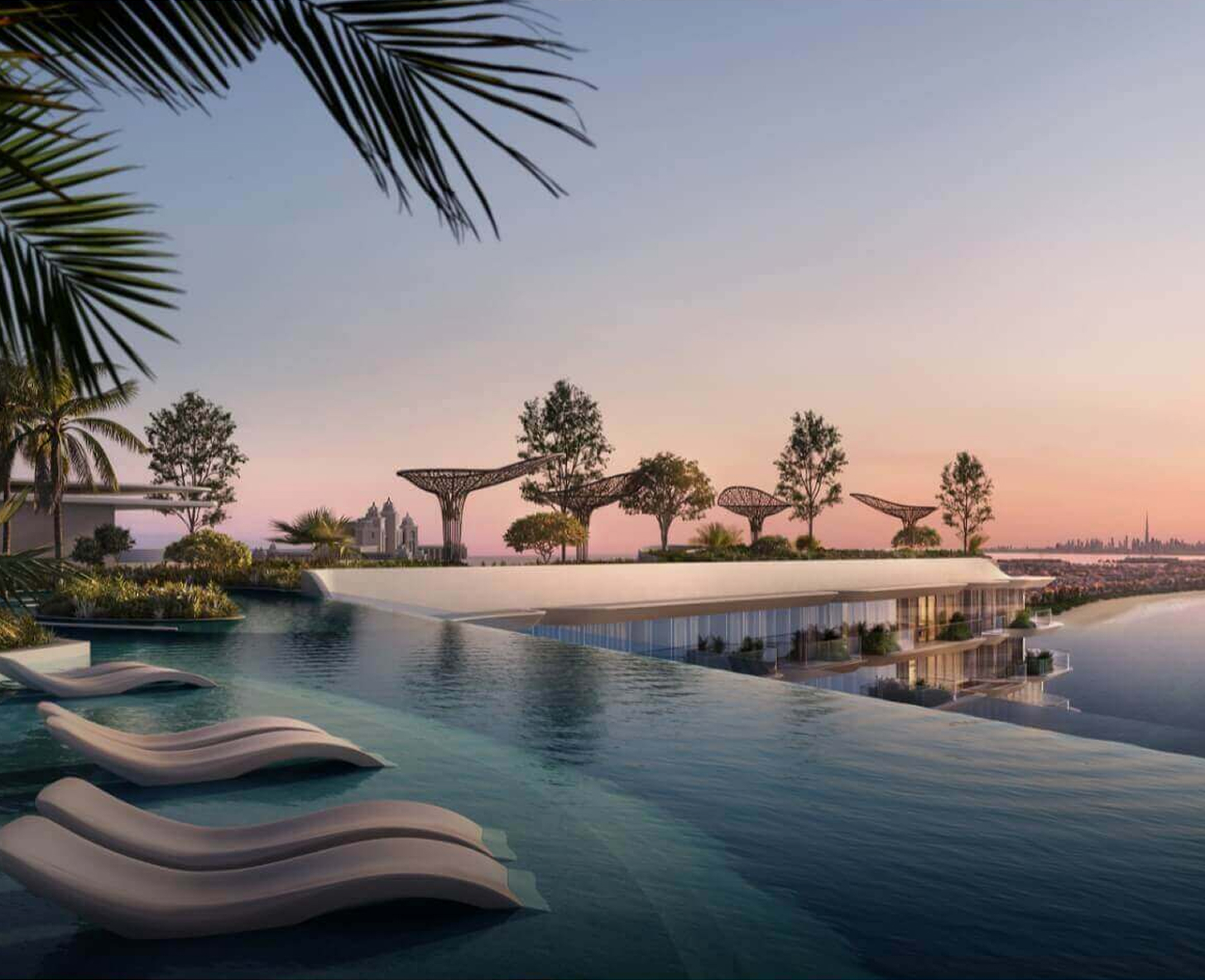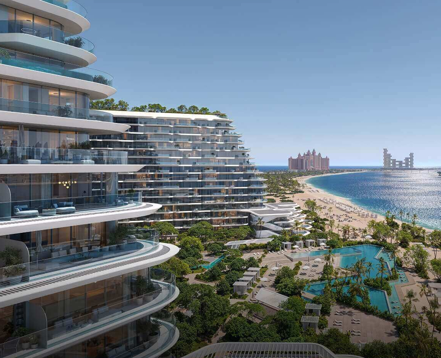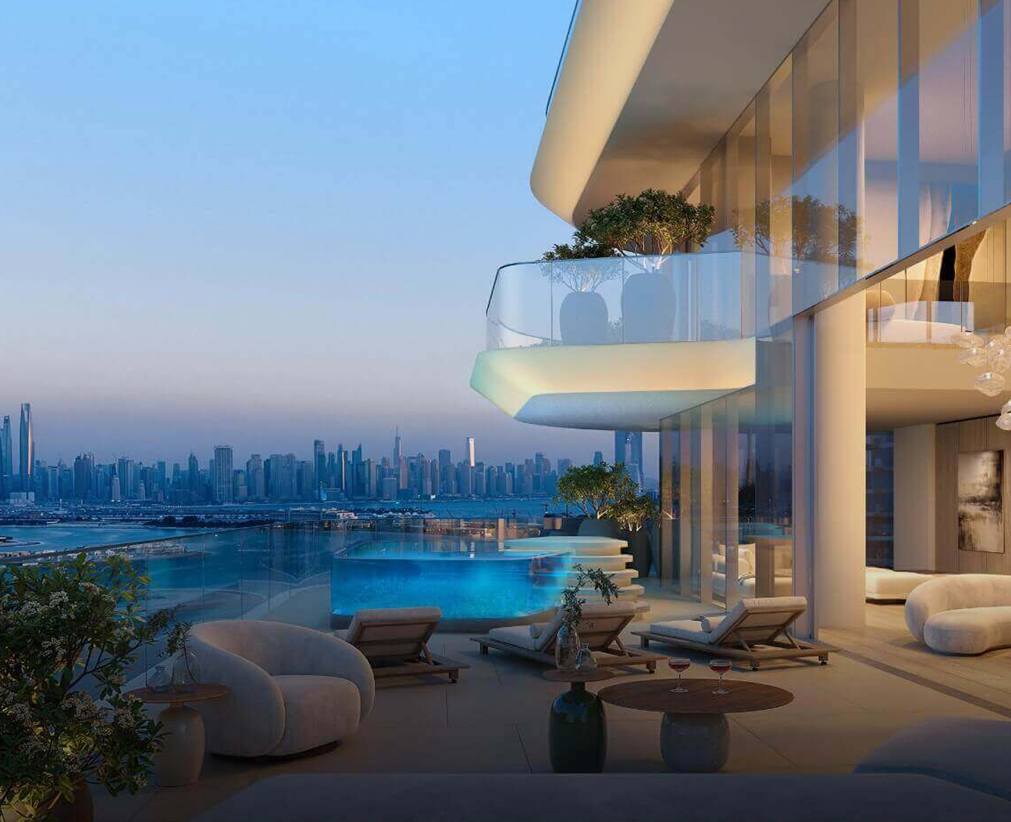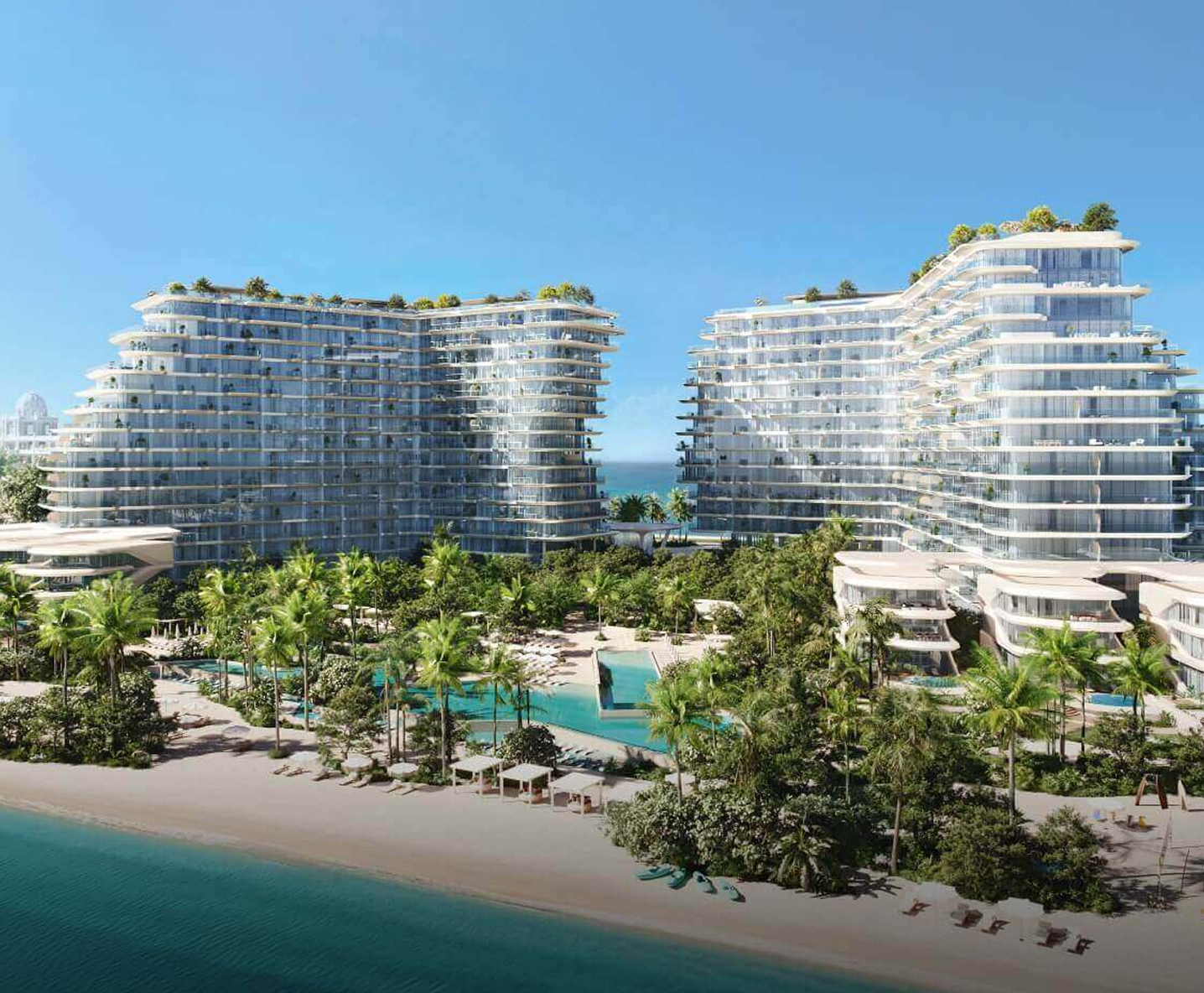 Two elegant towers, rising 51 and 33 floors from a shared podium, are situated on the Jumeirah Peninsula. The homes overlook the Arabian Gulf and the city, featuring serene interiors, large windows, and a seamless flow between indoor and outdoor spaces. The overall masterplan offers a resort-like atmosphere with tree-lined walkways, sky lounges, and fitness and spa facilities, all within a connected waterfront location just minutes from the heart of Dubai.